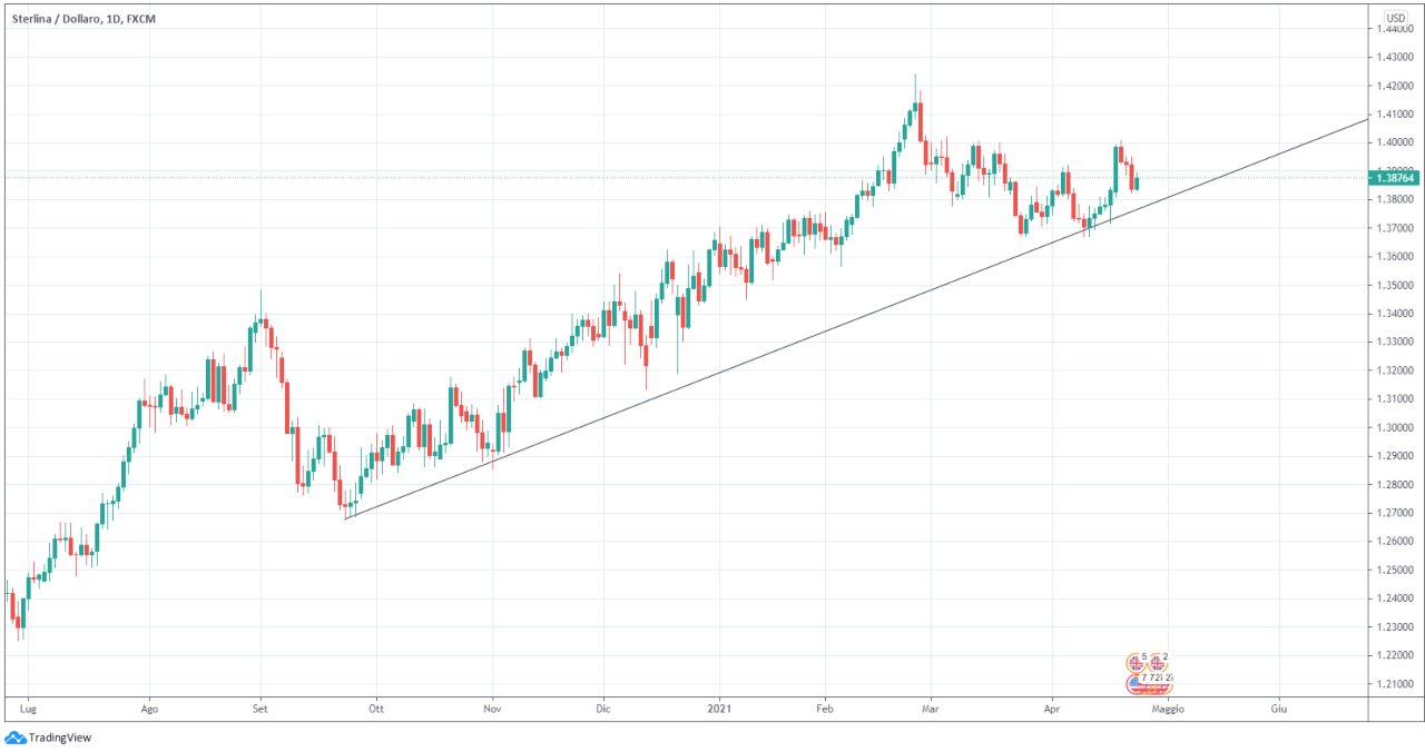 Nel grafico 2, relativo al cambio valutario Sterlina/Dollaro USA, è stato evidenziato un altro strumento utilizzato nell’analisi tecnica, ovvero la trendline.