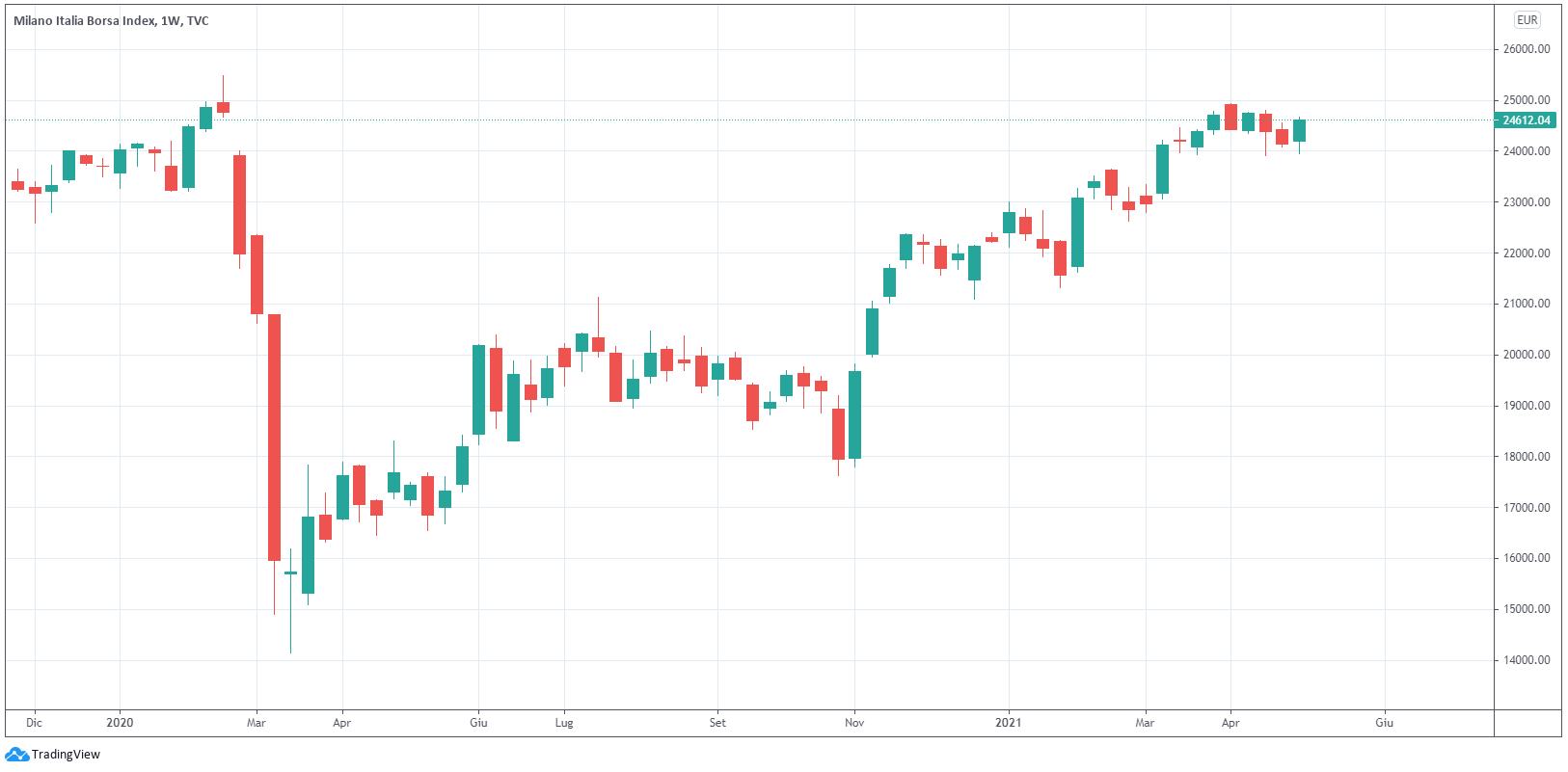 La settimana che si è conclusa venerdì 6 maggio è stata per il FTSE MIB la migliore degli ultimi due mesi: l’indice principale della Borsa di Milano, costituito dalle azioni delle 40 società quotate con maggior capitalizzazione di mercato, ha guadagnato l’1,95%, soprattutto grazie ai risultati trimestrali tendenzialmente positivi pubblicati in settimana (tra cui spiccano quelli di Unicredit e Stellantis) e dall’ottimismo generato dai recenti dati macroeconomici, che sembrano fornire i primi segnali di ripresa economica dell’eurozona, grazie alle riaperture post lockdown. Per trovare una performance migliore di quella registrata in questa settimana, bisogna tornare indietro alla seconda settimana di marzo, quando il listino principale di Piazza Affari aveva fatto registrare una performance del +5,00%.